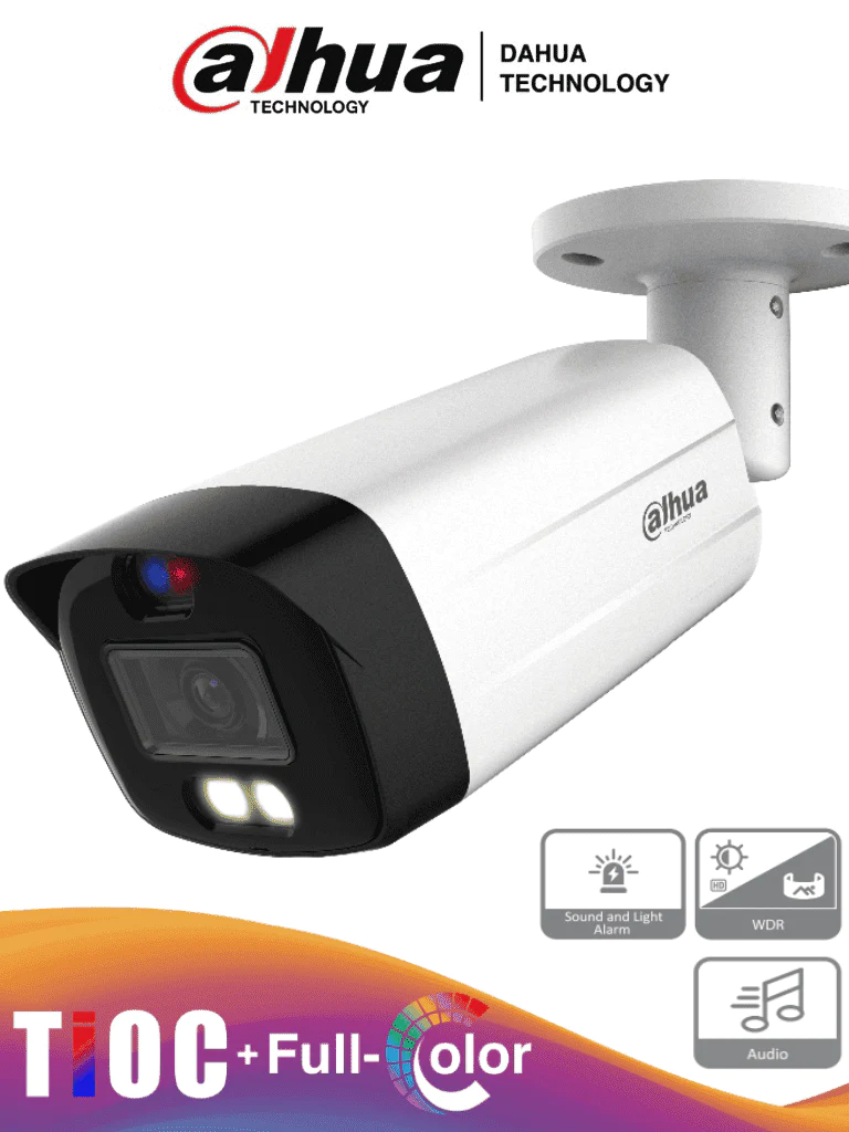 داهوا كاميرا خارجية ملونة في الظلام مع مايكروفون بدقة 8 ميجا اتش دي 40متر Dahua DH-HAC-ME1809THN-A-PV HDCVI Full-Color Active Deterrence Fixed Eyeball outdoor Camera with mic 8mp 40m