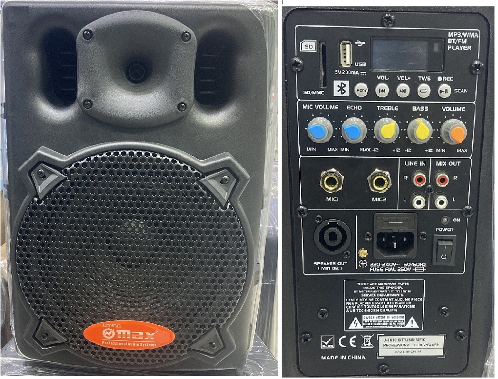 سماعة للمناسبات من ماكس كبيرة مقاس 15 انش مع بلوتوث ويو اس بي ومنفذ اوكس بقوة 900وات 15″ MAX J-1810 Speaker Powered, 900 Watt Active Compact