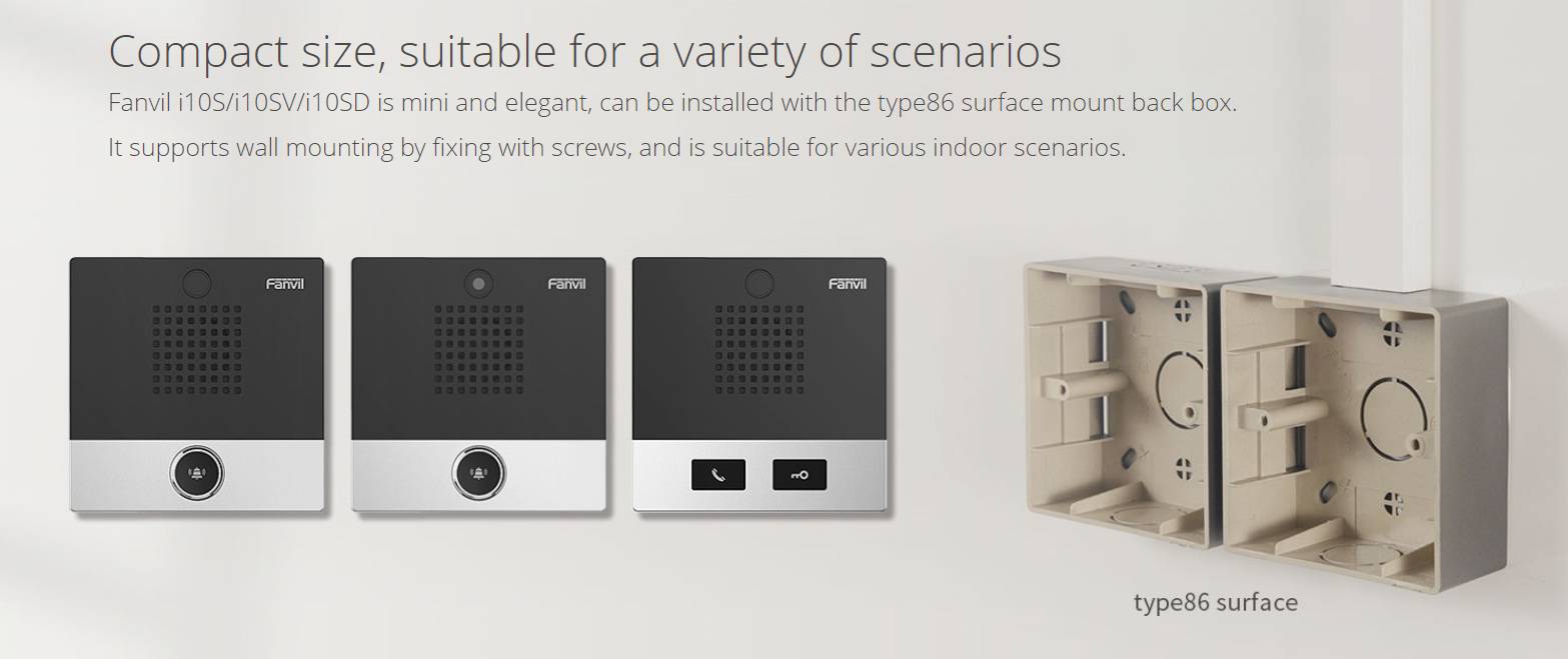 فانفيل i10SV انتركوم صوت وصورة مقاوم للماء والغبار. يدعم التثبيت على الحائط i10SV SIP Mini Intercom is designed for indoor situations and is IP54 waterproof and dustproof. It supports wall mounting installation