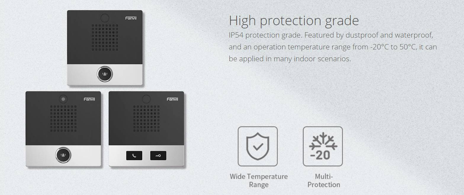 • The i10S/i10SV/i10SD SIP mini intercom is designed for indoor scenes with IP54 waterproof and dustproof.