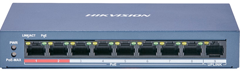 هيكفيجن سويتش 8مدخل جيجا يدعم الكهرباء للاجهزة Hikvision POE Switch, DS‐3E0510P‐E/M, 8 Port 1000 Mbps, 65W