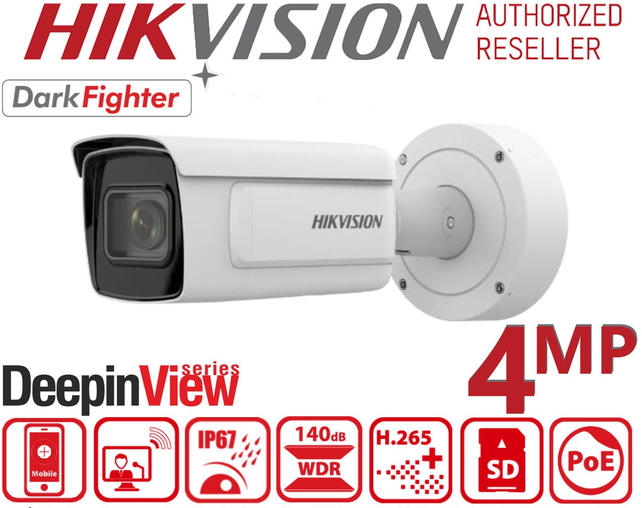 هيكفيجن كاميرا لوحات المركبات بدقة 4 ميجا اي بي عدسة زووم Hikvision ANPR, IP Camera 4MP DeepinView Moto Varifocal Bullet Camera