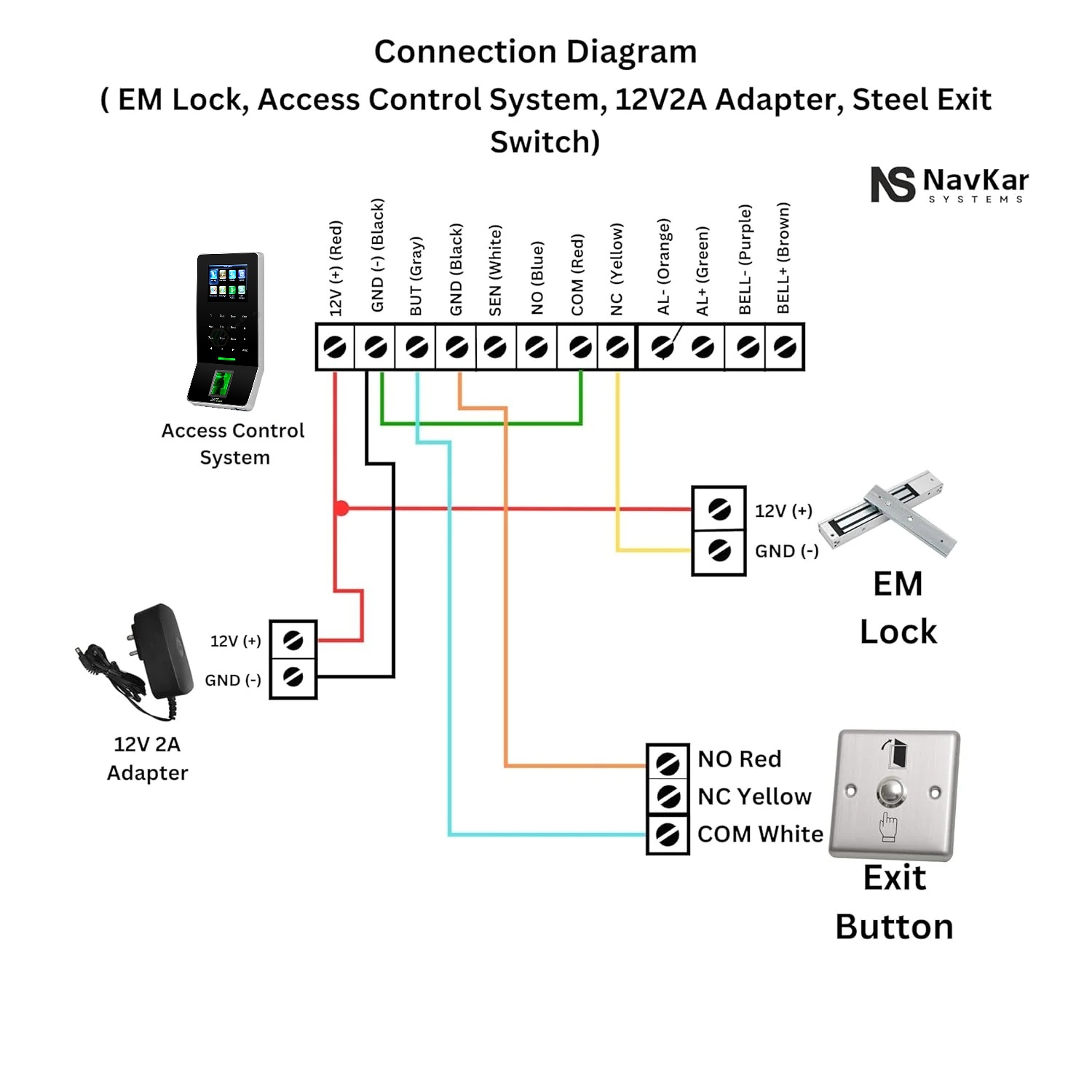 قفل باب كامل ( جهاز بصمة F22، قفل ممغنط بقوة 280 كيلوجرام، زرار خروج، محول 12 فولت 5 امبير)